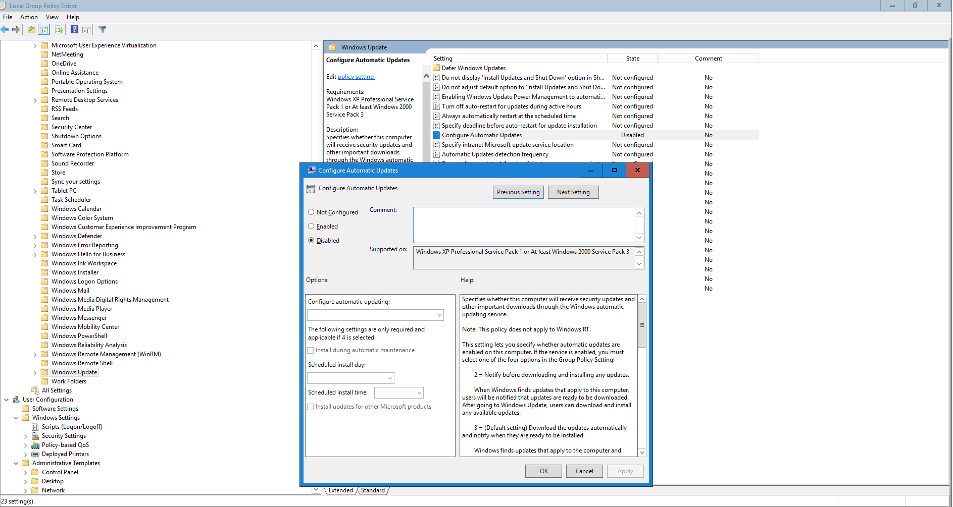 Windows Server 2016 disable update