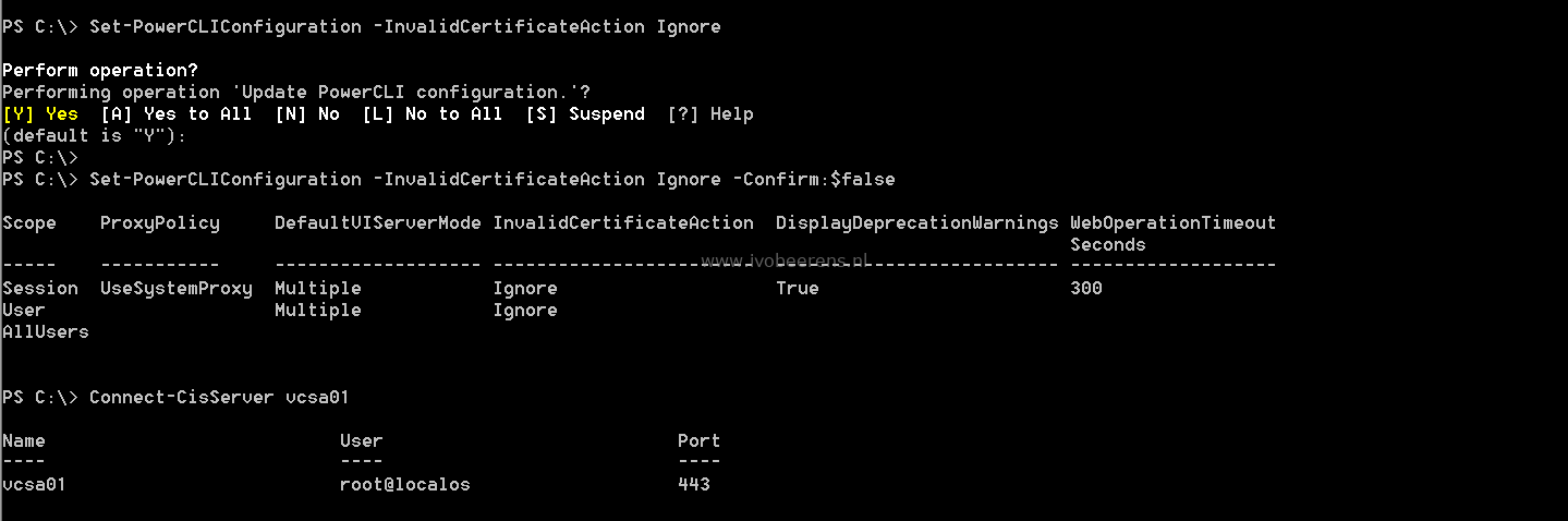Set-PowerCLIConfiguration -InvalidCertificateAction Ignore -Confirm:$false