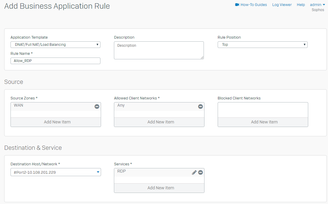 Sophos XG Firewall: How to configure a Business Application Rule for RDP